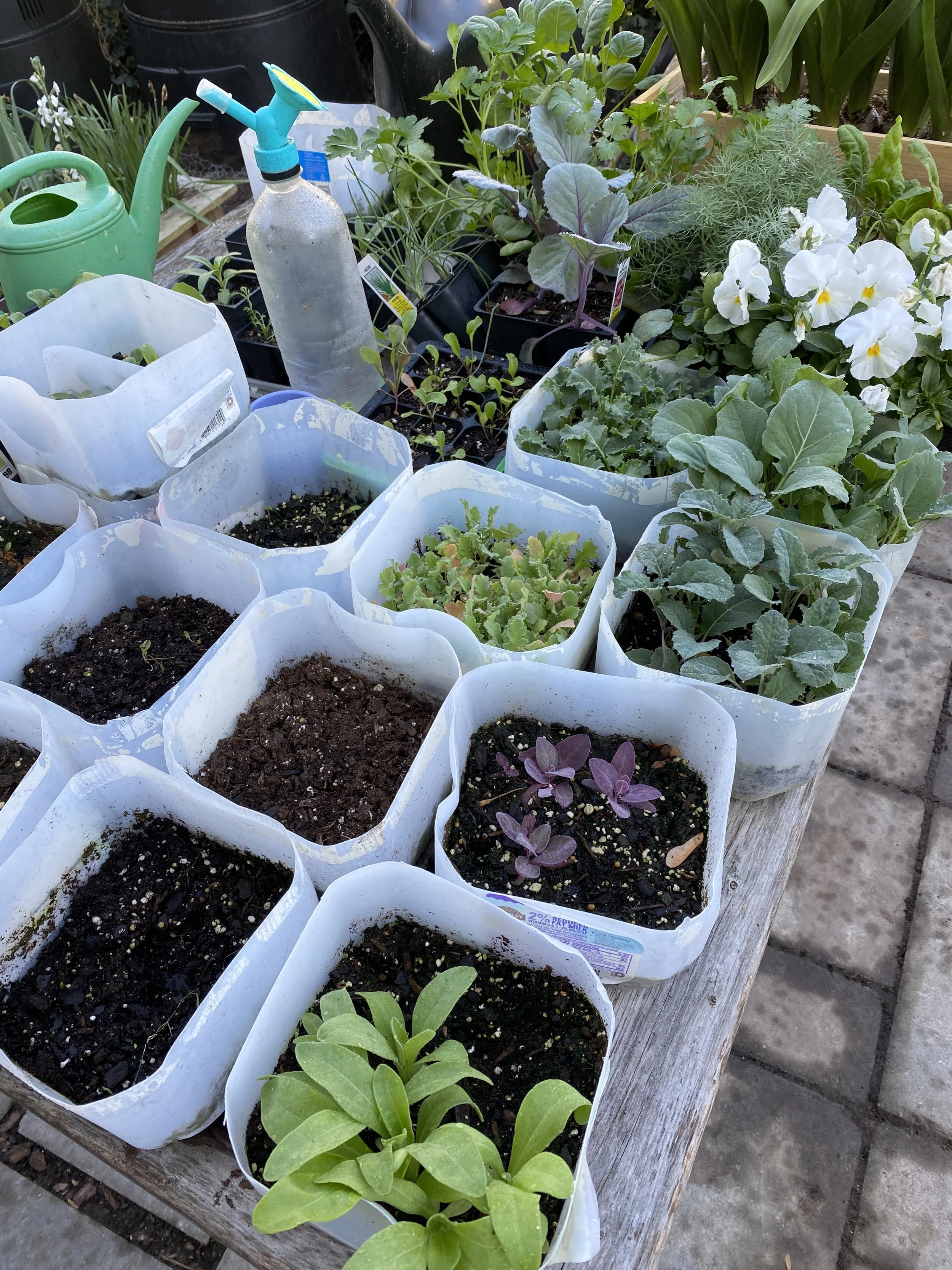 If you don’t need a whole tray of one plant, divide a single jug into sections and sow multiple varieties. Just be sure to label clearly.